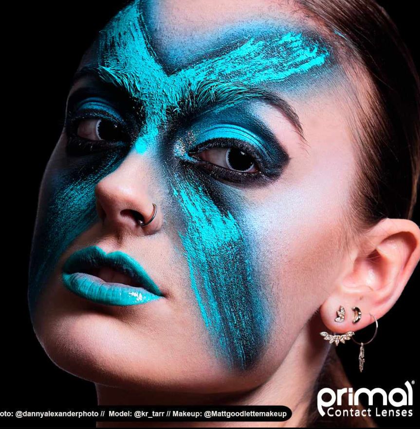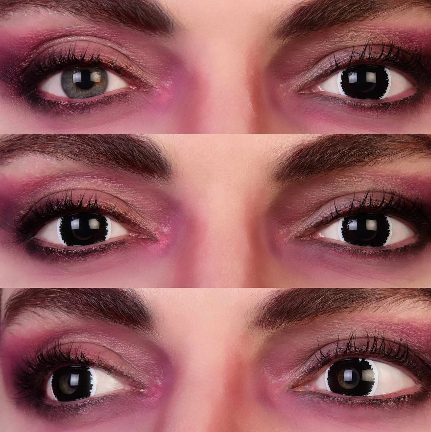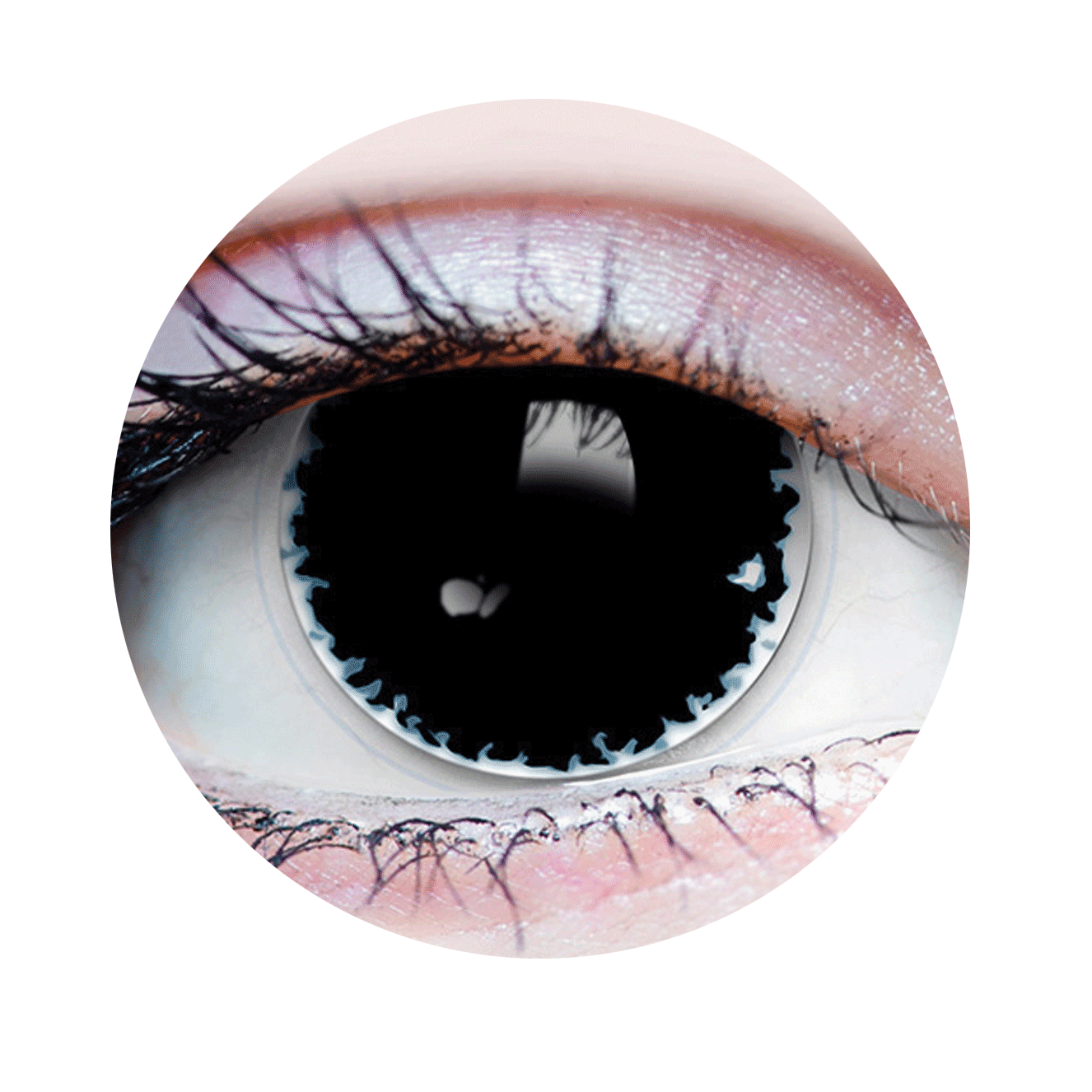 Design features a transparent pupil with an opaque black iris blended into a blue smoke effect on a white background.