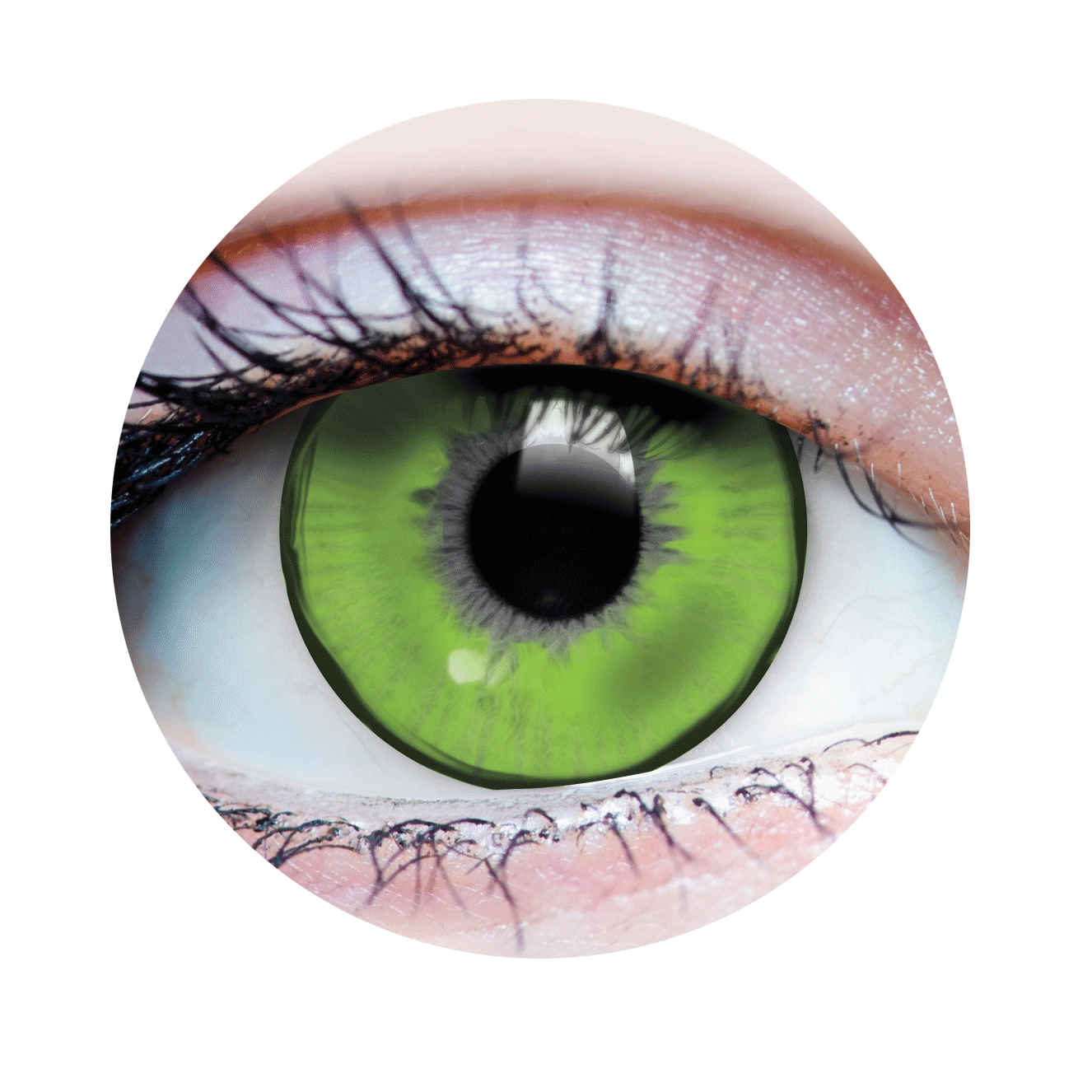 Design features a dark green smudge cloud around the pupil on a pale green base and a dark outer ring.