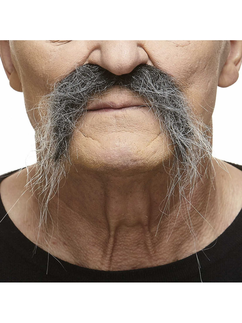 Life like synthetic fur facial hair with super sticky, medical grade, anti-allergic, adhesive strip on backside. Can be combed, trimmed and styled with hairspray. No additional glues required.