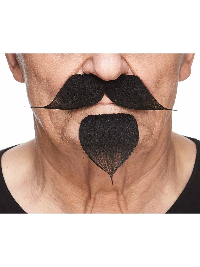 Life like synthetic fur facial hair with super sticky, medical grade, anti-allergic, adhesive strip on backside. Can be combed, trimmed and styled with hairspray. No additional glues required.