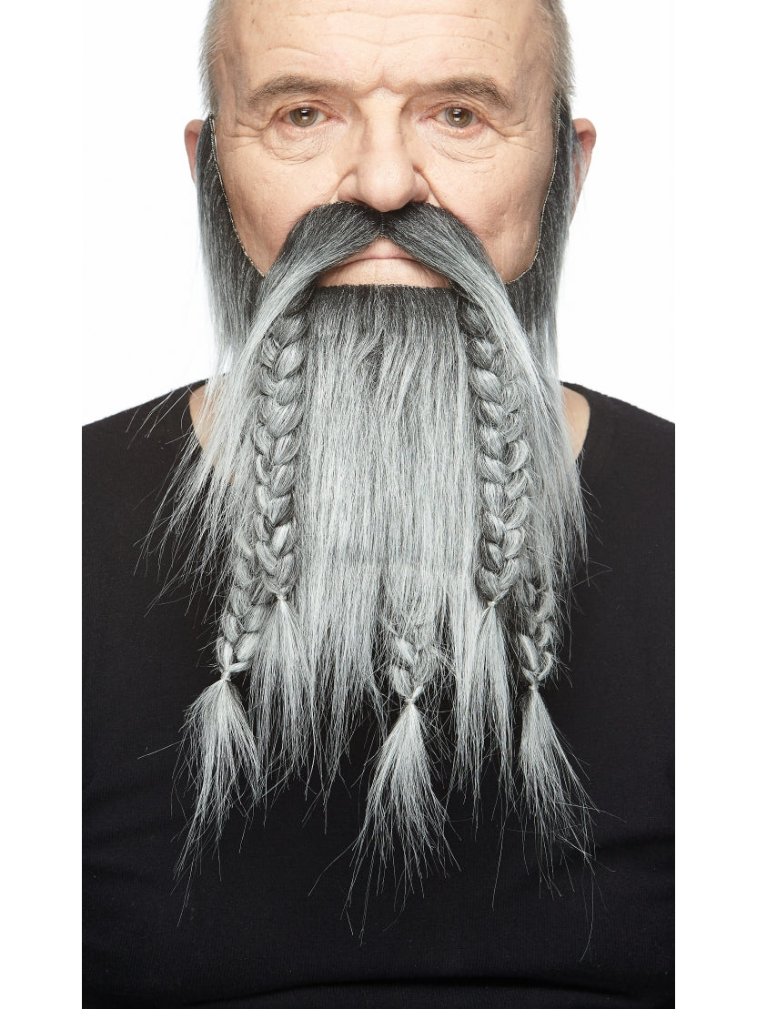 Life like synthetic fur facial hair with super sticky, medical grade, anti-allergic, adhesive strip on backside. Can be combed, trimmed and styled with hairspray. No additional glues required.