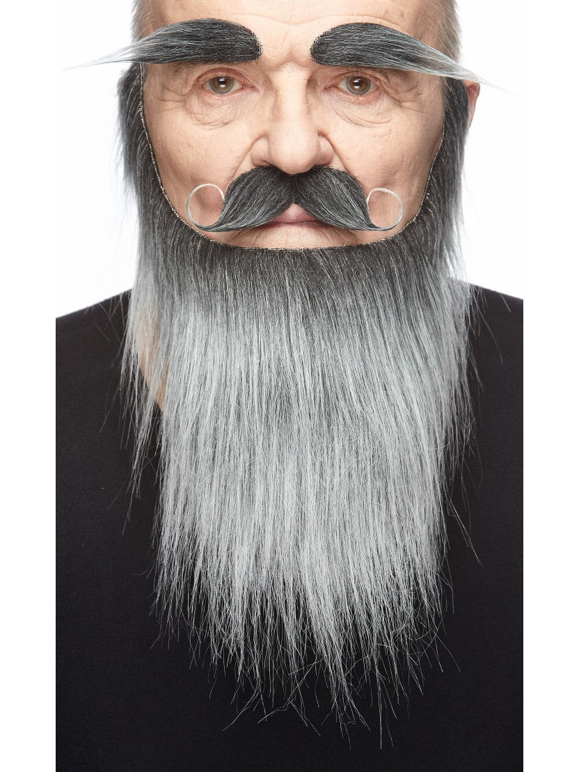 Life like synthetic fur facial hair with super sticky, medical grade, anti-allergic, adhesive strip on backside. Can be combed, trimmed and styled with hairspray. No additional glues required.