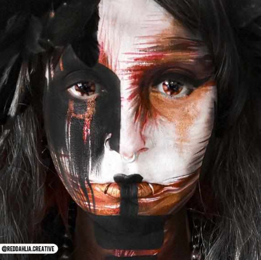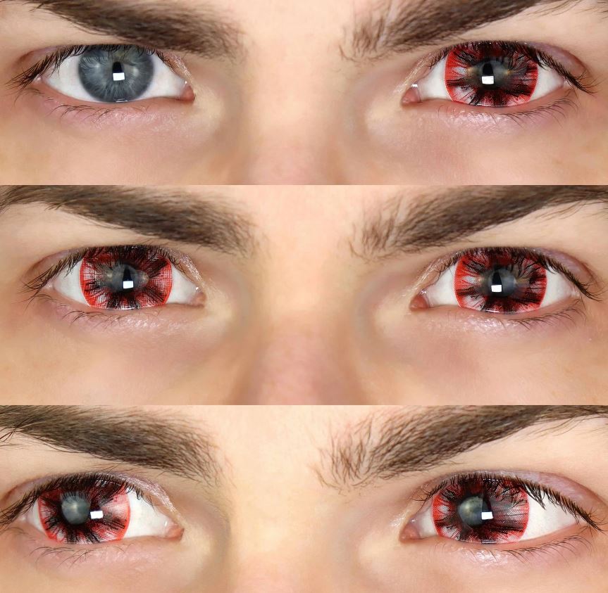 Features a washed out brown red base with black and red faded streaks throughout from the center of the lens. Larger contact lens measuring 15.2mm. The mini sclera covers more eye than the average contact lens. This is NOT a full sclera lens.