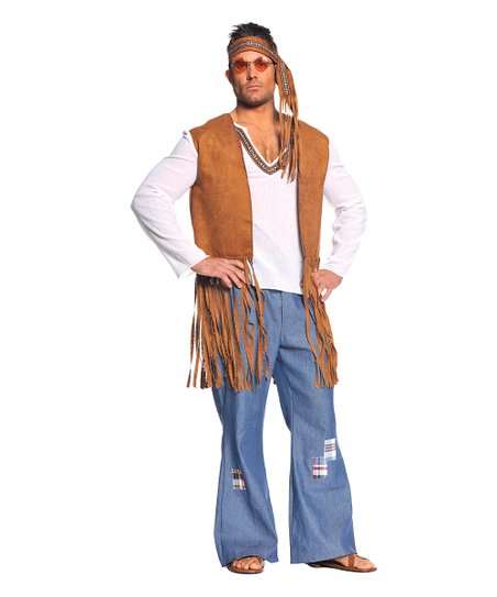 Includes: Fringed Faux Suede Vest With Attached Faux Shirt, Bell Bottom Pants, Headband.