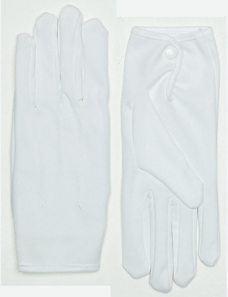 Black nylon wrist length gloves with white snap.