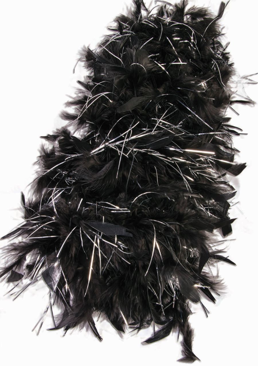 Feather boa with silver tinsel accents.