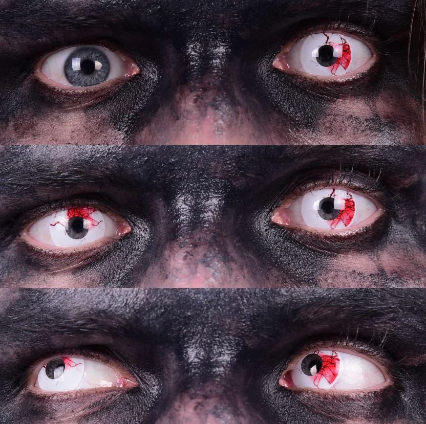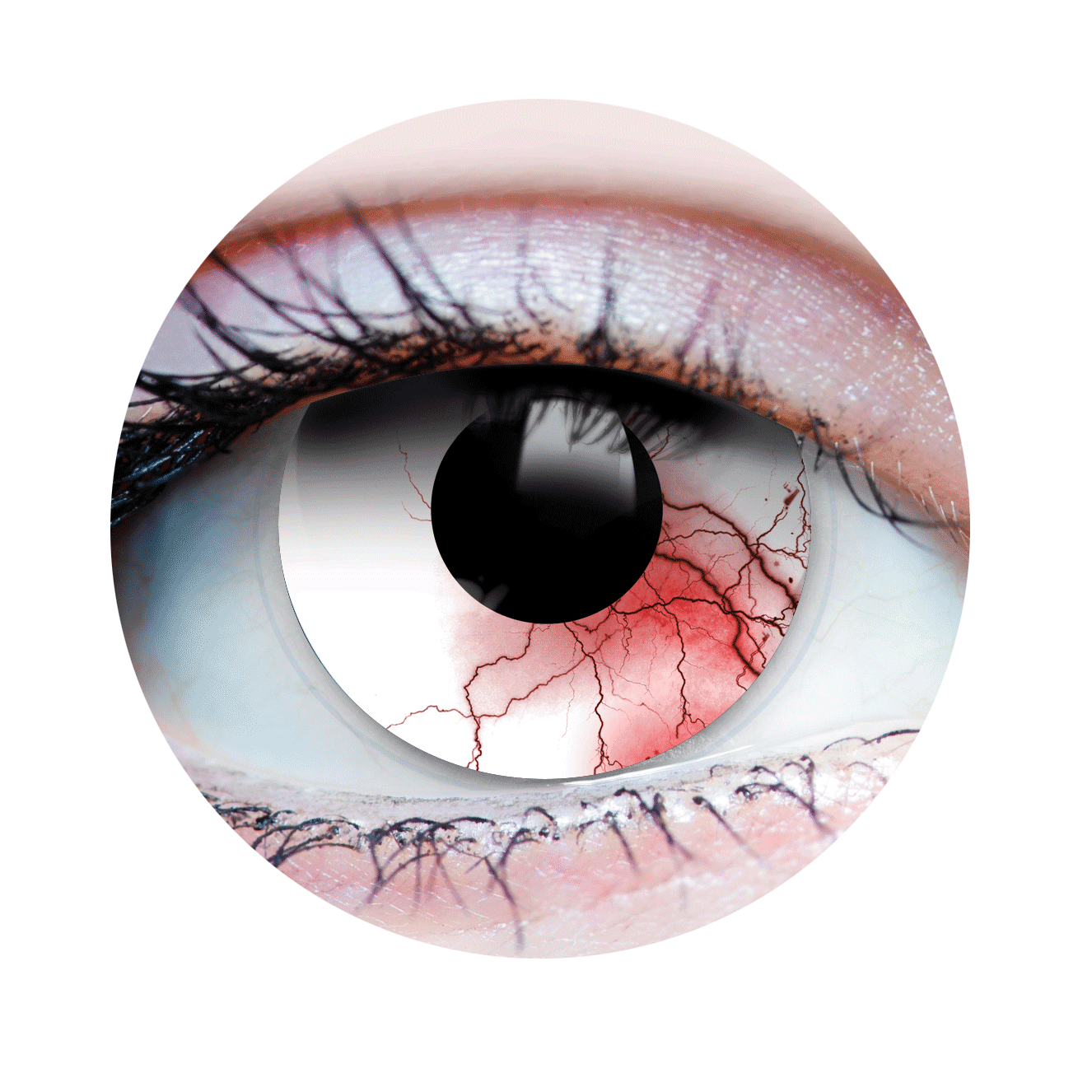 Design features a transparent pupil and an opaque white iris with monster approved red vein and blood cloud details.